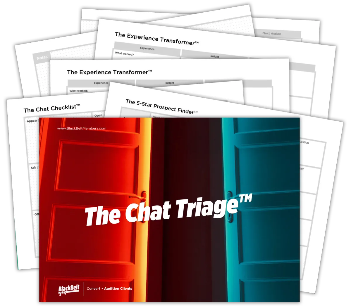 This PDF will teach you the art and science of triaging in the chat. You’ll learn how to get the attention of your market, check if they qualify as a five-star prospect, and build the momentum so they get excited to take the next steps with you.